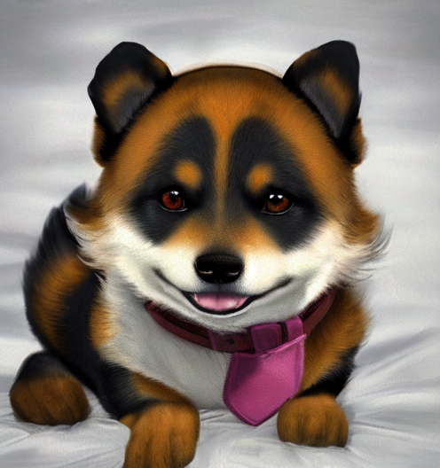 家で完全にくつろいでいる飼い犬の2次元画像、かなりお金持ちの家に飼われたようで幸せそう、きっといいエサももらってる